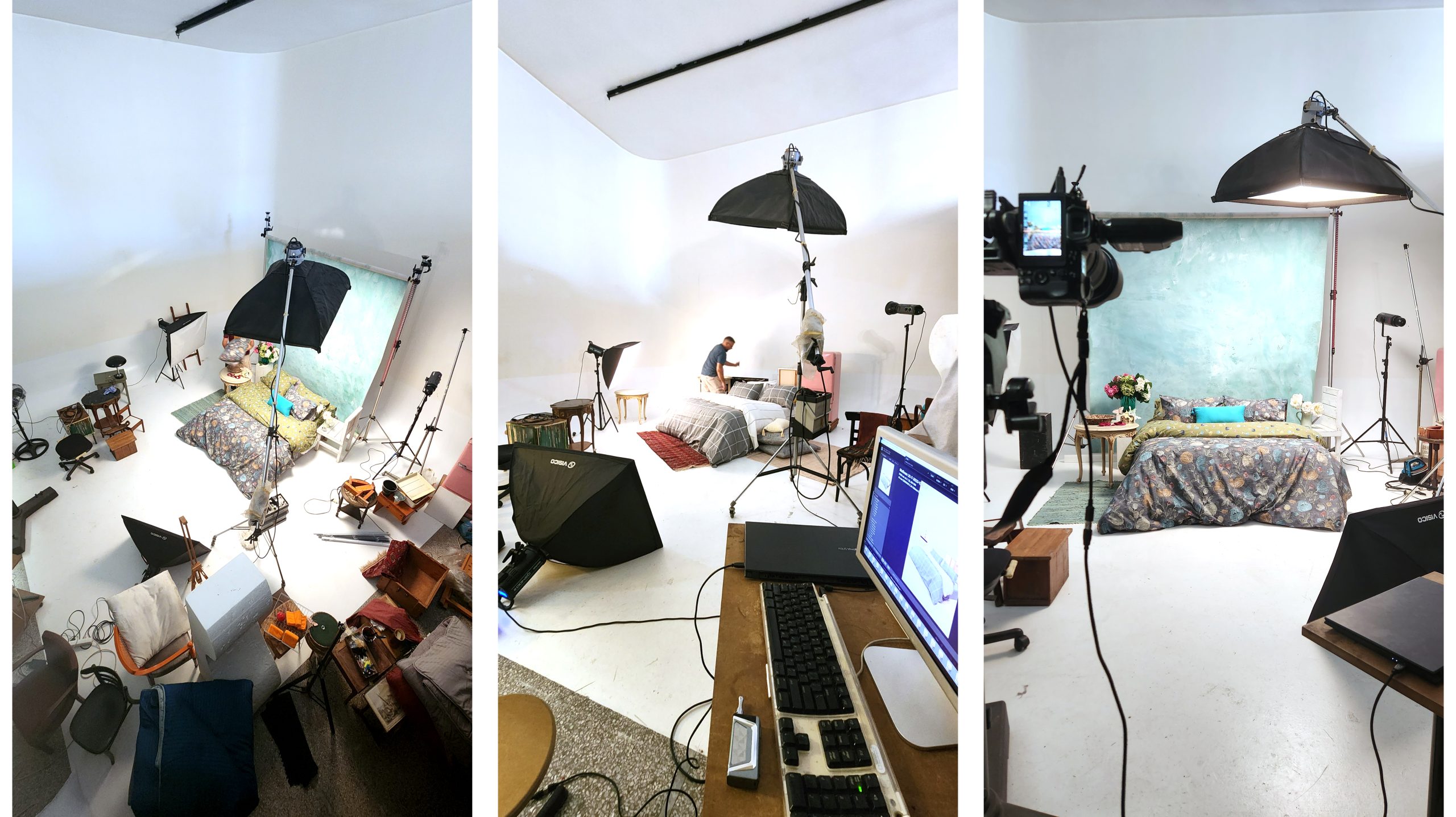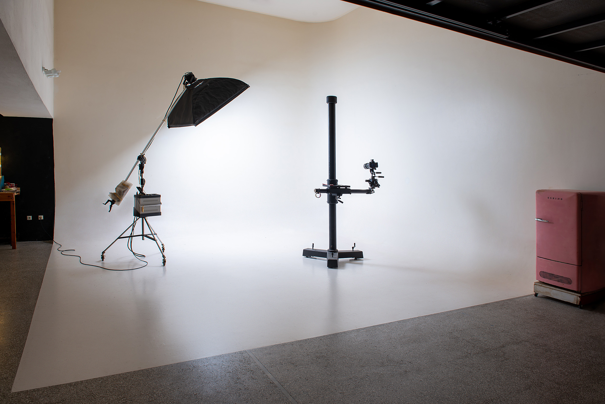 The entire studio is 180 suare meters, which also includes a kitchen, 2 bathrooms, a styling area, a make-up area, a living room and storerooms with props.